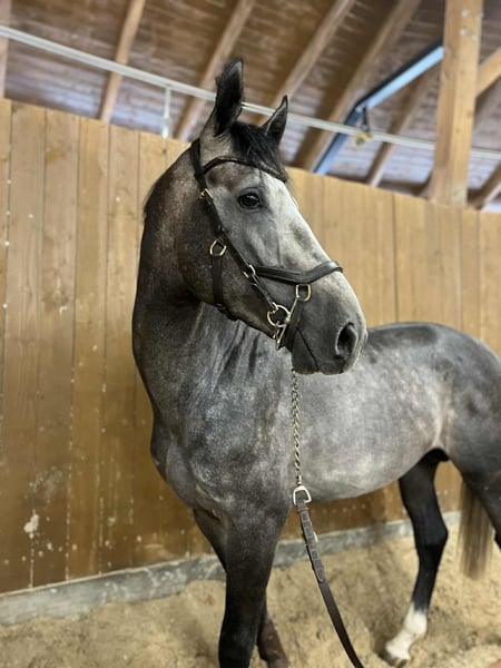 4 Jahre alter Wallach mit außergewöhnlichem Pedigree. Sein Vater Liamant W (nach Diamant de Semilly) hat bis 1,50 m geprüft, während die Mutter bis 1,60 m gestartet ist. Ein kluger und mutiger Hengst, der gerade erst mit der Arbeit unter dem Sattel beginnt. Nach seinem ersten Turnier, bei dem er nichts beeindruckt hat, zeigt er großes Potenzial. Er wird derzeit von einer Reiterin geritten. Aktueller TUV vorhanden