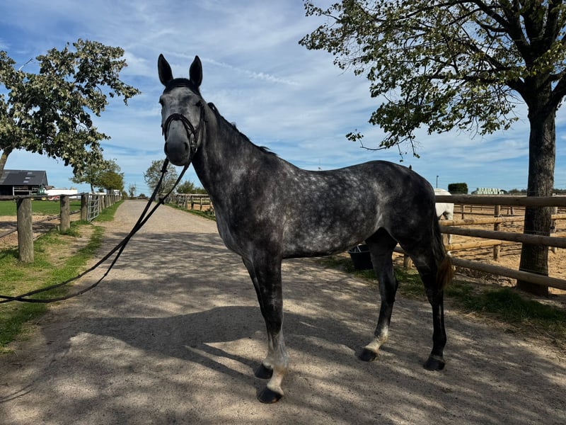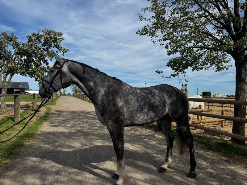 *** Please inquire via WhatsApp at 0176 24297968 *** Caan is trained and worked in accordance with his age and size. He confidently performs all three basic gaits in the arena, on the flat, and in the field, showing himself to be uncomplicated and very pleasant in the contact. He has already jumped a small course well, but has not yet been presented at competitions. In handling, he is well-behaved and easy to manage; he also goes out daily in a group and shows himself to be very compatible.