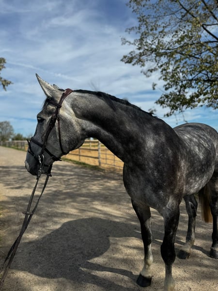 *** Anfragen bitte per WhatsApp an 0176 24297968 *** Caan ist alters- und größenentsprechend ausgebildet und gearbeitet. Er läuft sicher in allen drei Grundgangarten in Halle, Platz und Gelände und zeigt sich dabei unkompliziert und sehr angenehm in der Anlehnung. Im Umgang ist er artig und einfach zu händeln, er kommt außerdem täglich in der Gruppe raus und zeigt sich hierbei sehr verträglich.