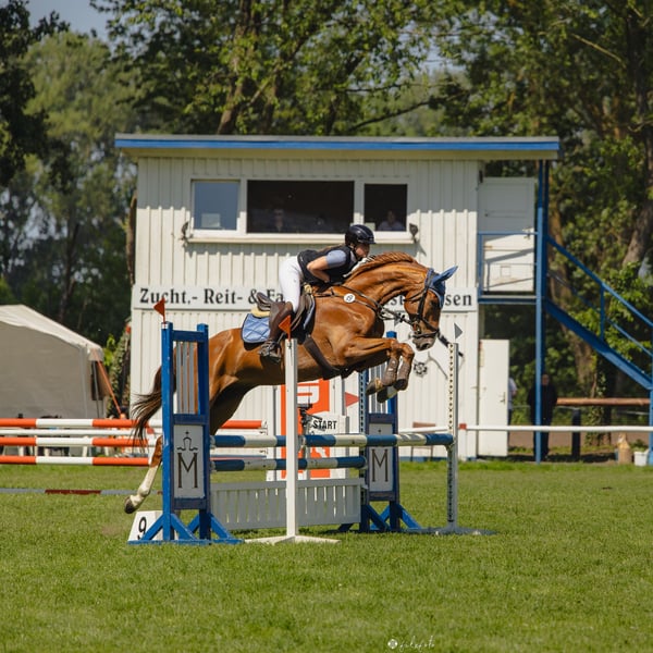 "Ente" is a 6-year-old Zangersheide gelding with very appealing pedigree and incredible talent over fences. Jumping 1.20 meters is effortless for him. He has competed in Jumping Horse A* with a score of 7.4, placing second, and has participated in A Springen and Springpferde A** classes. He is ready to start in Jumping Horse L classes immediately. However, Ente is not entirely straightforward in the arena, as he has a lot of go and can become strong. He is definitely not suitable for beginners. An experienced rider can handle him well, though. Ideally, his new rider would be a man, but women can certainly ride him as well. He is well-behaved in all situations and a trustworthy partner in the outdoor. He is calm and cooperative at the blacksmith, loading, and traveling in the trailer. He has the potential to reach the top in show jumping but can also make a leisure rider very happy.