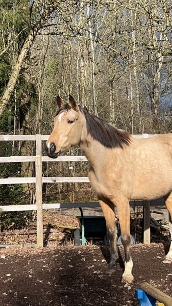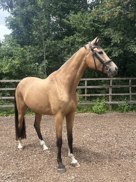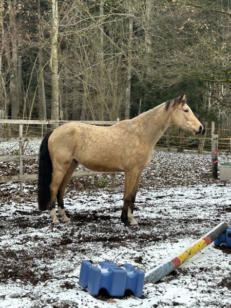 Verkaufe leider durch Probleme meinerseits meinen wunderschönen Zangersheider Wallach, geboren im Jahr 2020. Dieser beeindruckende Buckskin überzeugt durch sein elegantes Erscheinungsbild und sein freundliches Wesen. Mit einem Stockmaß von 174 cm ist er perfekt für Freizeitaktivitäten geeignet und zeigt sich vielseitig einsetzbar. Ein zuverlässiger Begleiter für alle, die ihm noch was beibringen wollen und zusammen wachsen in jeglicher Hinsicht. Er ist angeritten aber wurde nicht weiter gefördert durch Zeitmangel. Bei Interesse stehe ich gerne für weitere Informationen und eine Besichtigung zur Verfügung. Es ist möglich angepassten Sattel und anderes Zubehör mit zu erwerben.