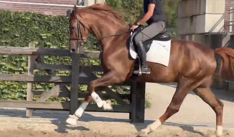 Beautifully bred: Denzel v’t Meulenhof x Virus Des Cabanes (Lupicor) x Churchill de Hus (Con air) The 4th dam is Bambola, dam of the famous Jumpy des Fontaines Excellent temperament! A pleasure to ride, a stallion with a superb canter and excellent balance! saddle broken since June and showing great maturity and potential. For more information/videos: +31683306403