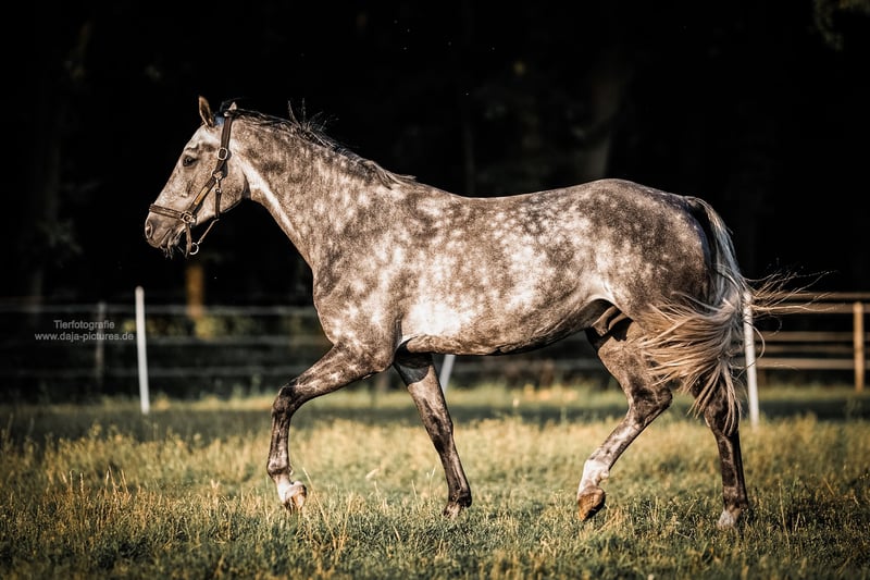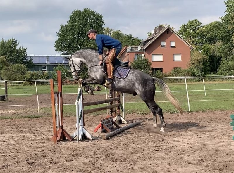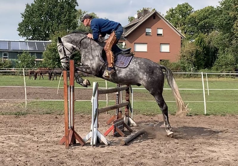 **Sales Advertisement: Zangersheider Gelding** For sale is a beautiful Zangersheider gelding, born in 2018. With a height of 166 cm, he is the ideal partner for show jumping enthusiasts and offers great potential for the sport. His striking apple-grey coat makes him a real eye-catcher. The gelding already shows promising abilities in jumping and has the necessary talent to be successful in the competition scene. He is well-mannered and suitable for both experienced riders and ambitious riders who wish to further develop him. If you are interested or need more information, please feel free to contact me. Viewings and test rides are possible by arrangement. We look forward to your message!