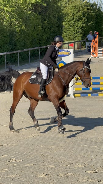 I am selling my gelding - affectionately called Carlo - due to my studies. He is a sensitive gelding who wants to work, needs security, and wants to perform... and that is exactly my problem, as I find too little time for him and he simply needs to be kept busy! This year, I have ridden many training sessions with him - dressage / jumping / cross-country. Weekly lessons and also external sessions. We have also participated in a few competitions, unfortunately, my personal confidence is lacking and I simply do not have the time to present him more. He is well-behaved in handling and loves children. He is good with the farrier - currently shod 4 times. He loads safely into the trailer and stands quietly alone at competitions. He goes out alone and in a group for trail rides. He is herd-compatible. He brings a lot of quality and is a horse for someone who has the time for a horse with a future. He is currently in full training and is in top physical condition. Absolutely place before price.