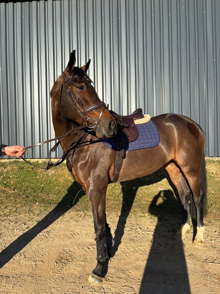 Elegant Zangersheider Mare for Sale – Perfect for Show Jumping! This beautiful dark bay mare, born in 2016, impresses with her striking appearance and natural talent for jumping. She is also very well-behaved and affectionate, yet has plenty of go under the saddle and clears everything effortlessly. With a height of 16.1 hh, she offers the ideal size for ambitious riders seeking a reliable partner in the show jumping arena. She comes from a renowned Zangersheider breeding program and boasts a promising pedigree. Her agility, liveliness, and eagerness to learn make her an excellent partner for competitive riding or dedicated leisure riding. Please feel free to contact me for more information or if you are interested. Come and see this exceptional mare for yourself!