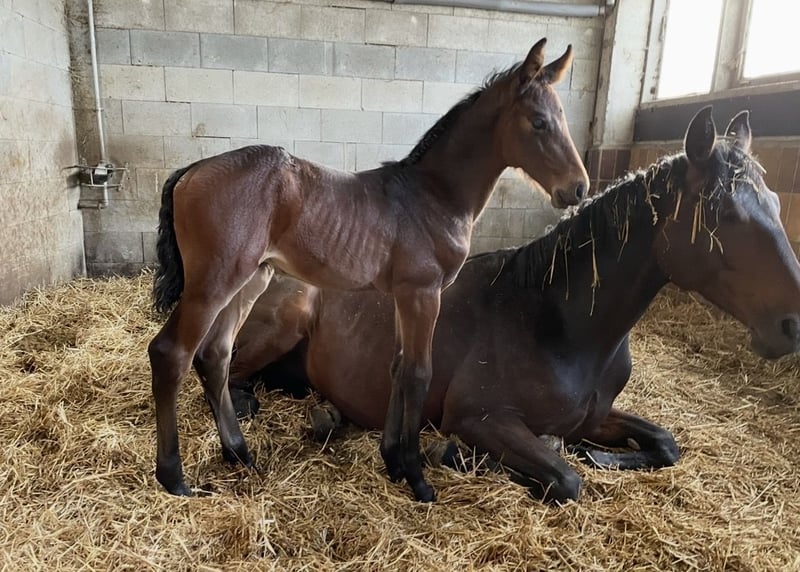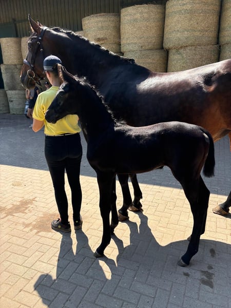 For sale: Beautiful Zangersheider mare – top breeding quality! We are offering a stunning dark bay Zangersheider mare, born in 2015. Standing at 17.6 hh, she combines size and presence. This broodmare impresses with her excellent pedigree and outstanding foals. She is easy to handle during foaling and has proven to be a wonderful mother. Currently, she is pregnant by Diacontinus and is due at the end of April. She can stay here until after foaling if desired. The mare can also be purchased without her foal and be bred again here. Photo 1: Eleonore Photo 2: Foal by Diacontinus Photo 3: Foal by Colorit Z Photo 4: Her first foal, a 6-year-old under saddle (successfully competing in dressage) Please feel free to contact me for more information or to arrange a viewing.