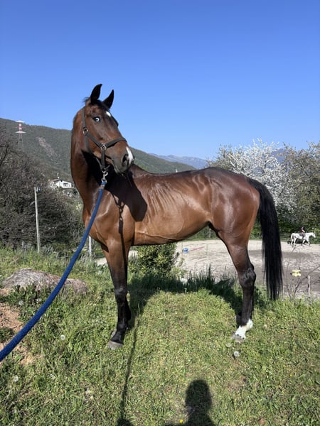 Clara ist 12 Jahre alt. Sie ist sehr lieb und im Umgang unerschrocken. Sie hat in Italien bis zu einer Höhe von 1,35 m an Springturnieren teilgenommen, ist aber beim Reiten sehr gestresst. Daher möchte ich sie als Zuchtstute verkaufen. Sie hat bereits 2 Fohlen in ihrem Leben gehabt.