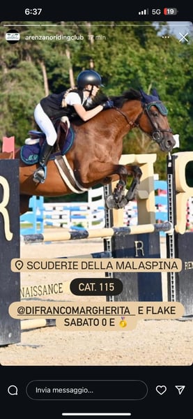 VENDO per cambio cavallo la nostra bellissima SNOW-FLAKE VD LAARSEHEIDE Z, femmina del 2010, altezza al garrese 163cm. Ha gareggiato in Olanda fino alla categoria 135cm ed utilizzata da noi in Italia per gare fino a 115cm per prendere il primo grado. È una cavalla bravissima e super vincente; 13 podi in 17 gare con il livello 115cm. Assolutamente ideale per chi passa dal pony al cavallo, avendo una galoppata facile. Ottimo carattere senza alcun vizio. Attualmente al maneggio di Arenzano (Ge), per la visione e qualsiasi prova. Contattate il n° (+39) 339-4369912 per informazioni e video. Alberto.