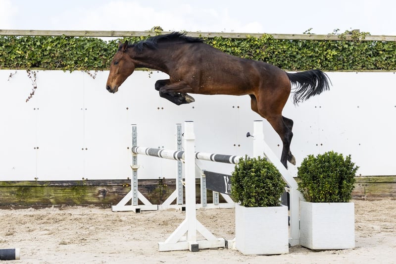 Telzerina ES Z is a long-lined horse with a lot of expression. She has a remarkably good hind leg technique and shows a lot of push-off over the jump. She is quick off the ground, nicely built uphill and has a canter with a lot of balance. A horse that moves well and shows a lot of quality in everything she does. In our opinion a very interesting horse for the future. Sire Toemme de Regor Z is a son of Chacco-Blue (1.60m), one of the most influential showjumping stallions worldwide, and comes from the strong Centa de Muze line. He passes on scope, technique and mentality. Dam Chelzerina is a daughter of Indoctro (1.40m) and comes from a very strong Dutch performance family. The damline is particularly strong with many horses at level: Obelix – 1.60m Napoleon – 1.60m Senator Gran Cru – 1.50m Kyrina – 1.45m Zidane – 1.45m Acarina – 1.45m Tsjarina – 1.45m Gangster – 1.40m Delzerina – 1.40m Gelzarina – 1.40m A family that consistently produces horses at 1.40m up to 1.60m level.
