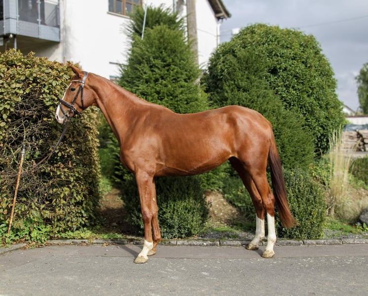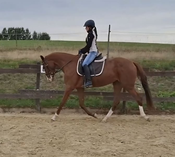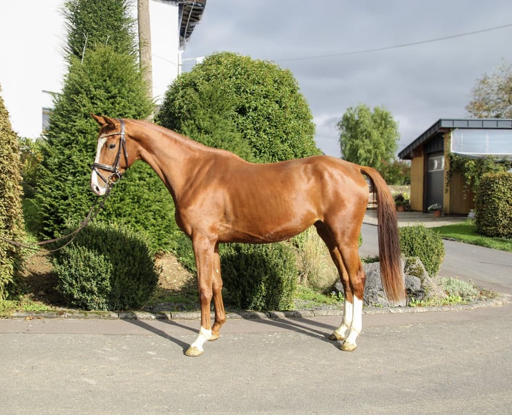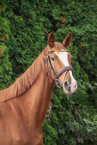 For sale is this exceptionally human-oriented mare by Farbenspiel. She impresses not only with her beauty but also with her intelligence and willingness to perform. She is currently being backed and shows a very unbothered attitude towards the rider. She has immense trust in humans and actively seeks daily cuddling sessions. She was raised on large pastures within a herd, where she spent summers outdoors 24/7 and winters in an open stable with daily pasture turnout. If you are looking for something special, this mare is a true jackpot. She is affectionate, eager to perform, intelligent, and level-headed.