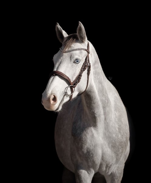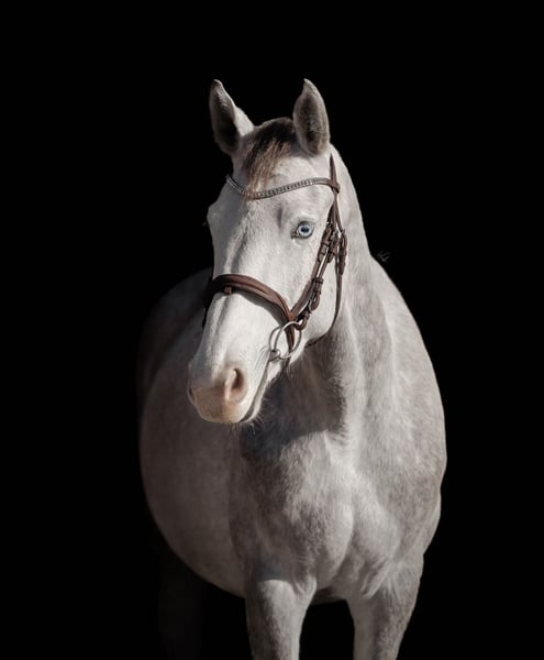 Jument Zangersheide de 3,5 ans avec un œil bleu