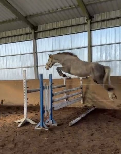 Jument Zangershide Coloricca Z, Colorit Z x Andiamo robe grise, un œil bleu. Âge : 3,5 ans | Taille : environ 160 cm Très calme, avec une bonne tête, sûre à manipuler – elle est prise en charge par des enfants. Montée en trois allures chez Justyna Żagiel (galop à peaufiner en raison de son jeune âge). Sans problème sous la selle – première monte sans stress, elle ne piaffe pas, ne tire pas, et n’a pas de “pires idées”. Montée dans le couloir (vidéos en privé). Excellente technique de saut, elle aborde les obstacles avec confiance. En bonne santé, sans vices ni tempérament fougueux, jamais colique. Elle occupe une position élevée dans le troupeau. La jument est pleine de l’étalon Nasdaq Z (Zangersheide), date prévue de mise bas : fin mai. Idéale pour un entraînement sportif avancé ou pour la reproduction. Jeune, sûre et avec un excellent pedigree. 70🥕🥕🥕 à négocier Pour plus de questions et d’informations, contactez-moi via WhatsApp au 723799801.