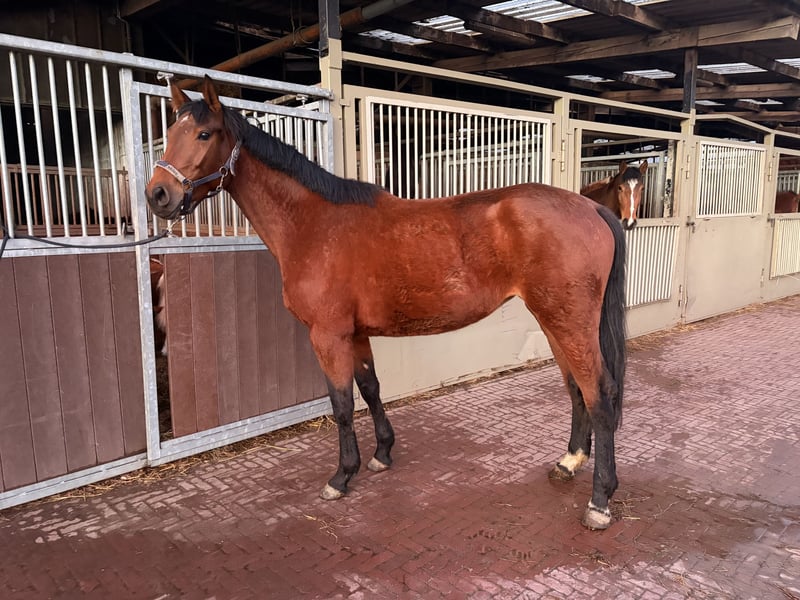 Very pretty, smart, athletic mare with ambition and quality. Still green, well-mannered. For inquiries, please contact by phone.