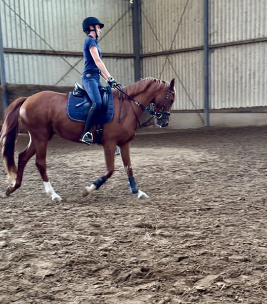 Zum Verkauf steht eine wunderschöne Fuchsstute, geboren im Jahr 2021, mit einem Stockmaß von zurzeit 158 cm. Sie stammt aus einer renommierten Zangersheider-Zucht und überzeugt durch ihr edles Erscheinungsbild sowie ihre vielversprechenden Dressur- und Springqualitäten. Die Stute ist ideal für ambitionierte Reiter, ob für Jugendliche oder zum Beispiel für ein Mutter-Tochter-Gespann, die eine zuverlässige Partnerin für den Dressur- oder Springsport suchen. In ihrer Grundausbildung zeigt sie sich sehr aufmerksam und lernwillig und verfügt über drei sehr gute GGA. Im Umgang ist sie ein wahrer Schatz! Sie ist ruhig, gutmütig und mag es sehr betüdelt zu werden. Sie kennt den Umgang mit Kindern, Hunden und Traktoren und ist dabei total gechillt. Aufgrund von Zeitmangel sind wir auf der Suche nach einem neuen, liebevollen Zuhause für unsere Maus, in dem sie weiterhin ihr ganzes Potenzial entfalten darf. Bei Interesse stehe ich gerne für weitere Informationen zur Verfügung.