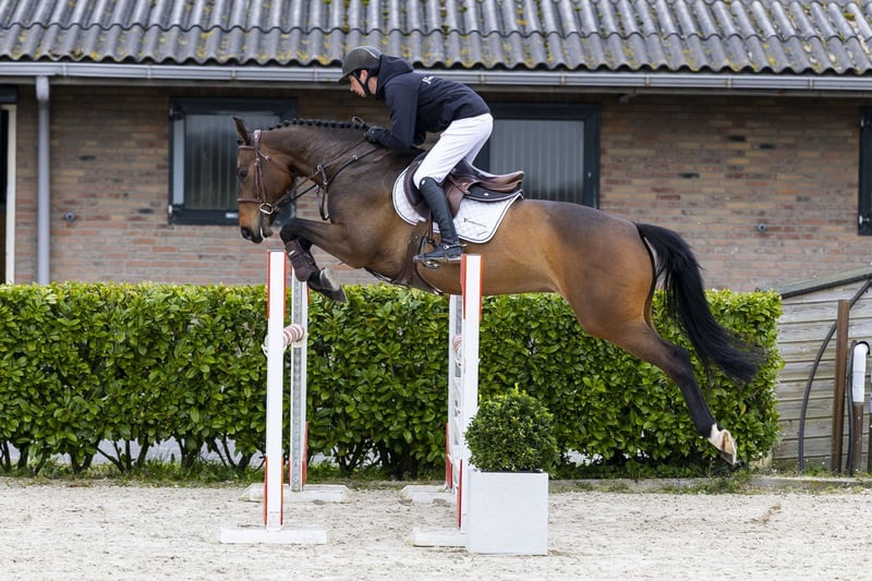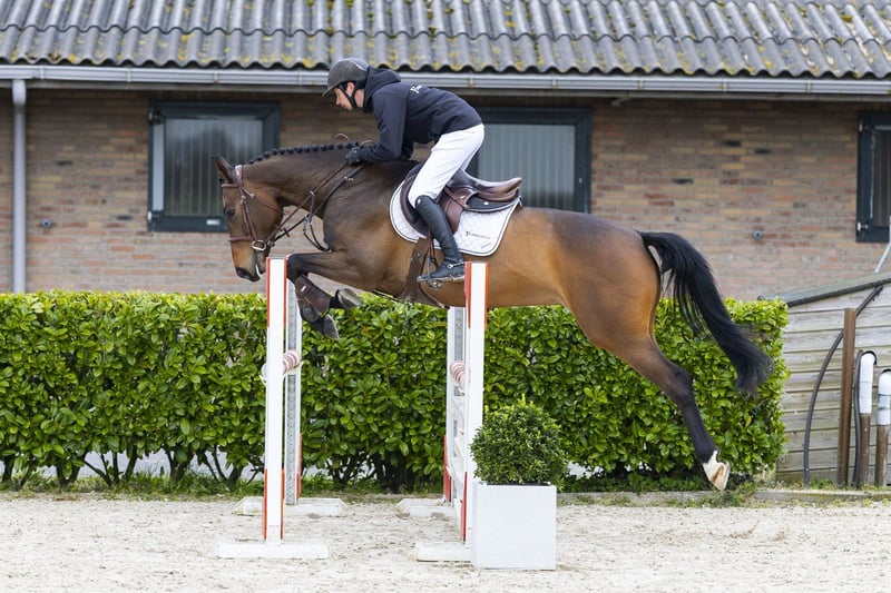 Shangri-La is a light-footed mare with a nice canter and a good way of jumping. She has correct front leg technique and shows carefulness. She is easy to ride and has experience at 1.00m level. On the jump she is well-behaved and gives a good feeling. Under saddle she can be a bit mare-ish. Before starting she may swish her tail and kick out slightly, but once she gets going this disappears and she focuses on her job. She needs a rider who is consistent and rides her with feeling. Once she trusts the rider, she does everything you ask. Sire Sandro Junior jumps at 1.40m level and is a son of the world-famous Sandro Boy (1.60m Grand Prix), proven at the highest level. Dam Carvella Z jumped at 1.45m level. The damline produces multiple sporthorses: Aventinus (1.50m) Artiste Mury Marais Z (1.55m) Action One Mury Marais Z (1.45m) Colanda Z (1.45m) Air Force One Z (1.45m) Dollars Forever Z (1.45m, approved stallion) Don Juan Z (1.50m) Bellissimo Z (1.40m) Amichora Z (1.35m) A-Cumano Z (1.35m) Calvachor Z (1.35m) multiple horses at 1.30m level A family with proven performance in sport.