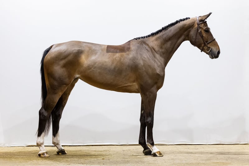 High Krista’s K Z is an impressive young mare with proven performance bloodlines and clear future potential. Her sire High Big Andi K competed at 1.50m Grand Prix level and passes on scope and sharpness. Her damline is even more remarkable: her granddam is the same grandmother as Taloubet Z, the world champion and one of the most iconic jumpers of his generation. This family has produced multiple 1.50m and 1.60m horses, making her highly valuable for both sport and breeding. She has been under saddle for 3 to 4 months and has already jumped a small course at home. She is still green but shows a lot of quality, scope and a willing attitude. In the stable she is sweet and uncomplicated. Under saddle she demonstrates natural talent and significant power. She is well-behaved yet sharp — a mare that will benefit from a rider who can guide her further in her training. A young mare with exceptional pedigree, ability and strong prospects for both top-level sport and breeding.