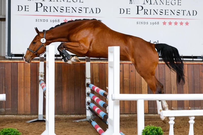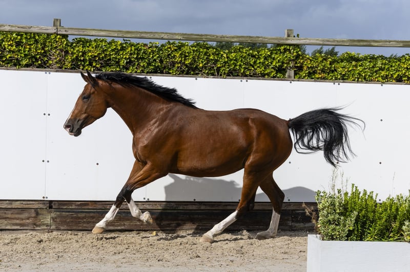 This five-year-old mare Harper Z shows a fantastic way of jumping and shows easy scope. The stallion Hardrock Z (Heartbreaker x Carthago) had a very successful sport career. He participated in the 2014 World Equestrian Games in Caen and the 2016 Olympic Games in Rio de Janeiro with Emanuel Andrade. They also became individual sixth at the Pan American Games in Toronto. Dam Firaltha W is sired by 1.60m GP stallion Carambole and is a half-sister of the 1.65m Grand Prix stallion Chaplin (Verdi) with Martin Fuchs, winner of the 2022 FEI World Cup Final. Granddam Jaltha B (Concorde x Nimmerdor) received the KWPN predicates elite, preferent, prestatie and sport (for 1.35m level showjumping).