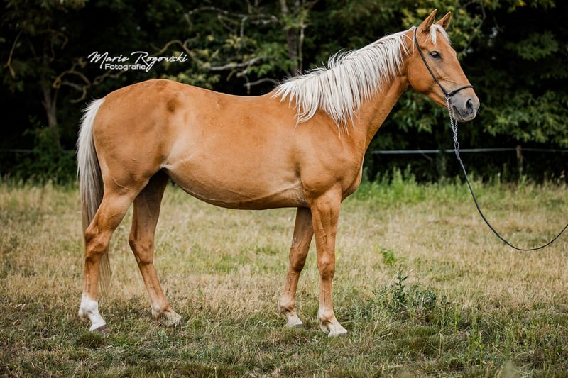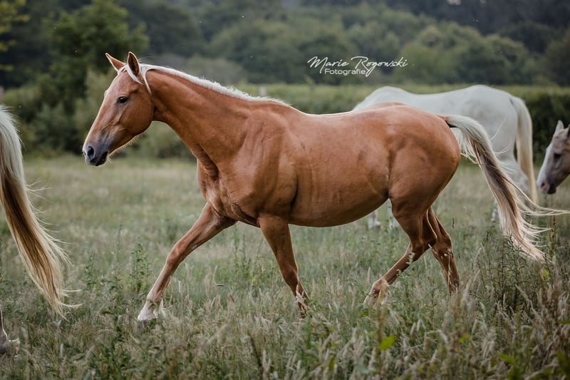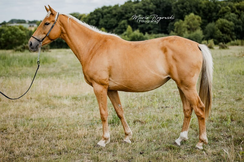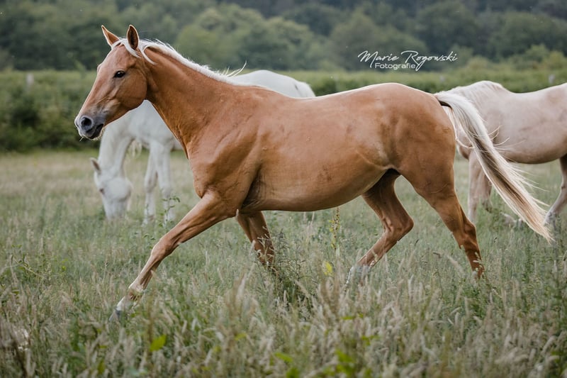 Zangersheide-Stute | geb. 2020 | Palomino (e/e, Cr/n, nd1/nd2, Agouti ungetestet) COOKIE Z ist eine besonders typvolle junge Stute mit hervorragendem Bewegungspotenzial und vielversprechendem Springvermögen. Bereits als Fohlen überzeugte sie mit auffälliger Ausstrahlung, gutem Fundament und einem satten Goldton, der sich nach dem Fohlenfell zu einer außergewöhnlich intensiven Palominofarbe entwickelte - seltener sieht man ein solch tiefes, klares Gold. Ihr Pedigree vereint bewährte Leistungslinien aus der internationalen Springpferdezucht. Ihr Vater ist der berühmte Cola Zero, ein Holsteiner Leistungshengst, der sich international im Springsport bis Klasse S** bewährt hat. Aufgrund ihrer Abstammung und ihres Typs eignet sie sich ideal für ambitionierte Reit- oder Zuchtprojekte - auch mit Blick auf farbvererbende Sportpferdezucht.