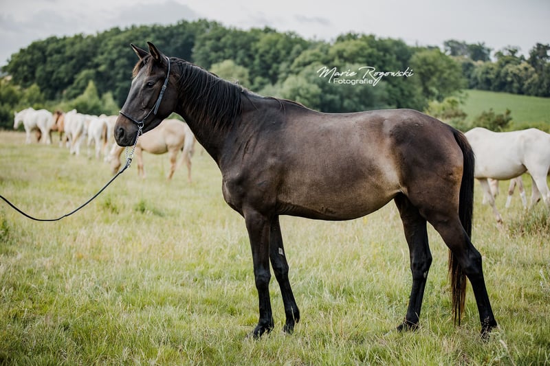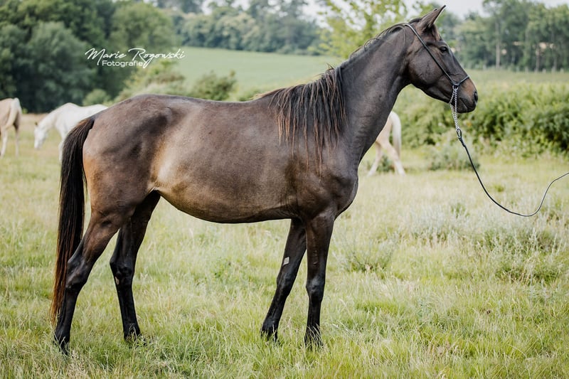 Klacz | Zangersheide | Ciemnobrązowa | urodzona w 2020 roku MIDNIGHT Z to elegancka, wysokorosła młoda klacz o wyrazistej, wyraźnie zaznaczonej głowie i niezwykle dobrze zbudowanym ruchu. Szczególnie jej kłus zachwyca energią i elastycznością. W kontaktach jest przyjazna, ciekawska i łatwa w obsłudze. Jej ojciec Mykonos łączy nowoczesną genetykę ujeżdżeniową pochodzącą od Millennium oraz słynnego Desperados FRH, który w 2016 roku był numerem 1 na światowej liście koni ujeżdżeniowych. Jej matka Funny Girl jest jedną z nielicznych czerpiących z hodowli koni czołowych ras czerń z potwierdzonym genem dun, i wyhodowała sportowe konie użytkowe o rzadkiej genetyce barwnej.