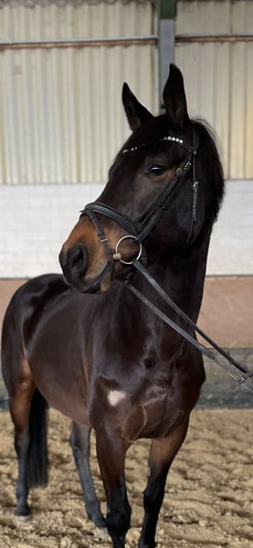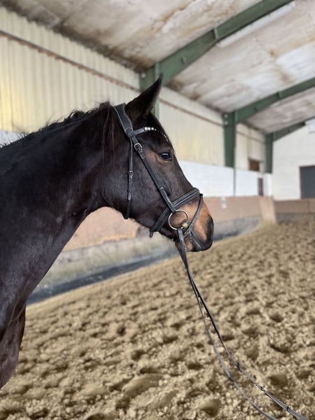 Zum Verkauf steht eine 2019 geborene, 167cm große, schwarzbraune Stute von Canturano Z aus einer Niveau x Landadel Mutter. Cleo kommt direkt aus Züchterhand. Auf Grund von Reitermangel kam sie erst im Oktober 25 zum anreiten in den Stall. Sie konnte somit ganz in Ruhe wachsen und Reifen. Beim reiten zeigt sie sich brav, rittig und mit der richtigen Einstellung. Sie macht bereits die ersten kleinen Sprünge unter dem Sattel. Cleo ist eine menschenbezogene, liebevolle Stute, verträglich mit Artgenossen und absolut unkompliziert im Umgang. Hunde, Katzen, Ziegen, Schweine, Trecker und alles an Geräten und Geräuschen die auf einem Hof so anfallen sind ihr bekannt und stellen kein Problem dar. Zudem kennt sie Führanlage und täglichen Weidegang. Sie ist eine tolle, unverbrauchte Stute, welche noch am Anfang ihrer Sportlichen Laufbahn steht. Cleo ist regelmäßig entwurmt, geimpft und dem Schmied vorgestellt, Zähne sind aktuell gemacht. Getüvt ist sie noch nicht. Auf Grund ihrer Abstammung, Rittigkeit und Einstellung, sowie einem korrekten Fundament ist sie auch interessant für die Zucht. Bei Interesse kontaktieren Sie mich gerne telefonisch oder über WhatsApp. Gerne sende ich Ihnen bei ernsthaftem Interesse aktuelle Videos.