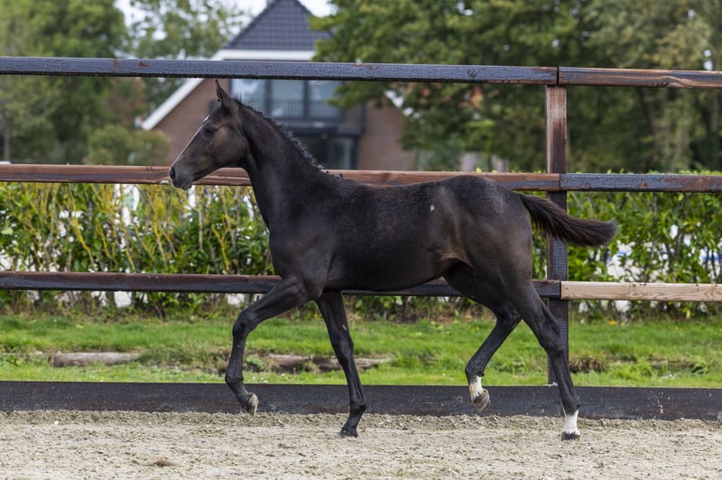 Het merrieveulen Athena heeft heel veel pluspunten. Ze is langgelijnd, heeft front, is lichtvoetig en heeft een actief gebruik van het achterbeen, waardoor ze heel makkelijk schakelt in beweging. Vader Aganix du Seigneur brak door op 1.60m niveau onder Jos Lansink, totdat hij geblesseerd raakte en volledig ingezet werd als dekhengst. Nakomelingen in de 1.60m Grand Prix zijn onder andere Agana van het Gerendal Z, Agadance van ’t Gelutt, Akarad Hero Z, Ayade Hero Z, Athletix Hero Z en Attoucha. Moeder Toboja Cortina stamt af van topvererver Cornet Obolensky uit een halfbloedmerrie. Deze Tobajo Blue Imini (Blue Talk xx) is een halfzus van de Grand Prix dressuurhengst Tobajo Picez, gereden door Helena Liholt Gulli (NOR), en nauw verwant aan het CCI4* eventingpaard Lavendel met Alice Andersen (SWE).
