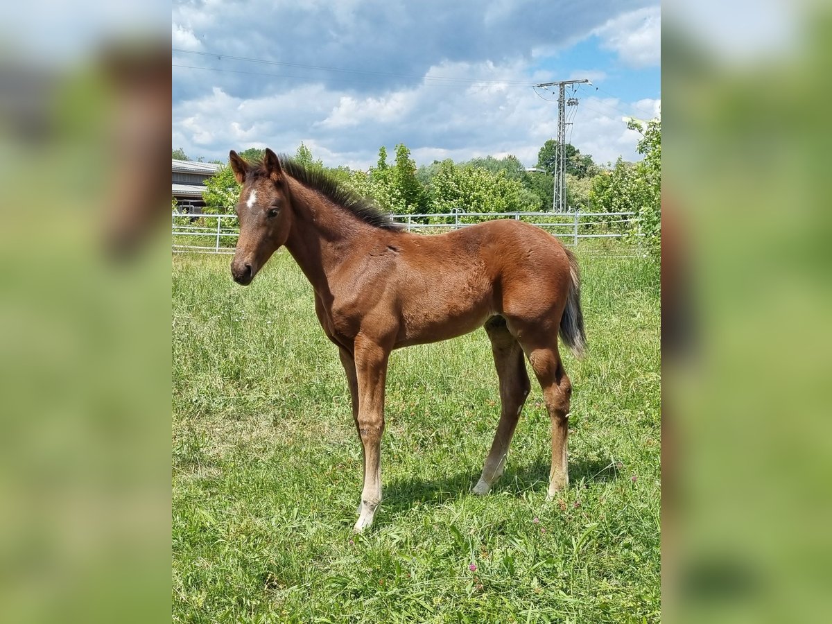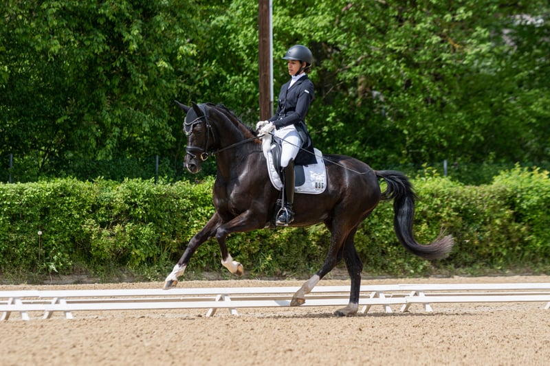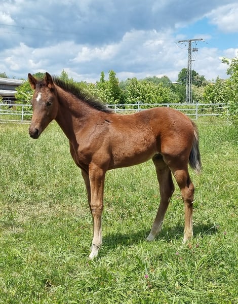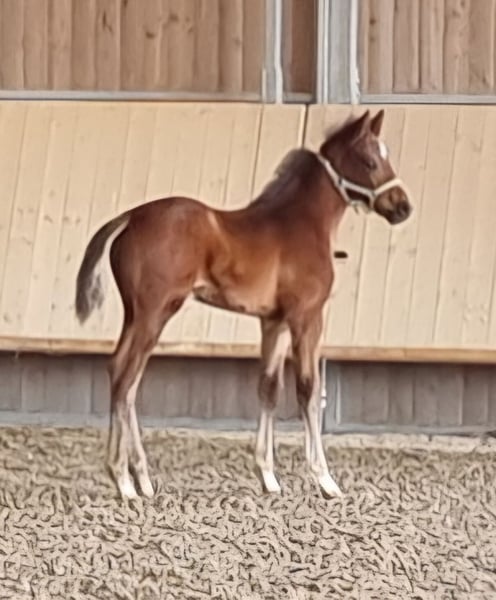 This beautiful and very correctly built dressage stallion was born on March 10, 2025. He is an embryo transfer foal from the famous Vitalos. His mother, Quality Time, is 10 years old this year and an Oldenburg Elite Mare - Pedigree: Quantensprung/Placido. Quality Time has been successfully competing in dressage for years and has won all her tests in 2025 so far. M**, S*, and S** all with scores of 69-70%. She is currently nearly S*** ready and will make her debut at this level this season. Quality Time was also qualified for the Bundeschampionat as a 5-year-old. With this beautiful and talented stallion foal, you are securing the future! Sale is directly from the breeder. The mother is also with us and can be viewed. !! The mare that the foal is at foot with is not the genetic mother but a surrogate mother. The ridden black mare in the videos/pictures is the genetic mother.