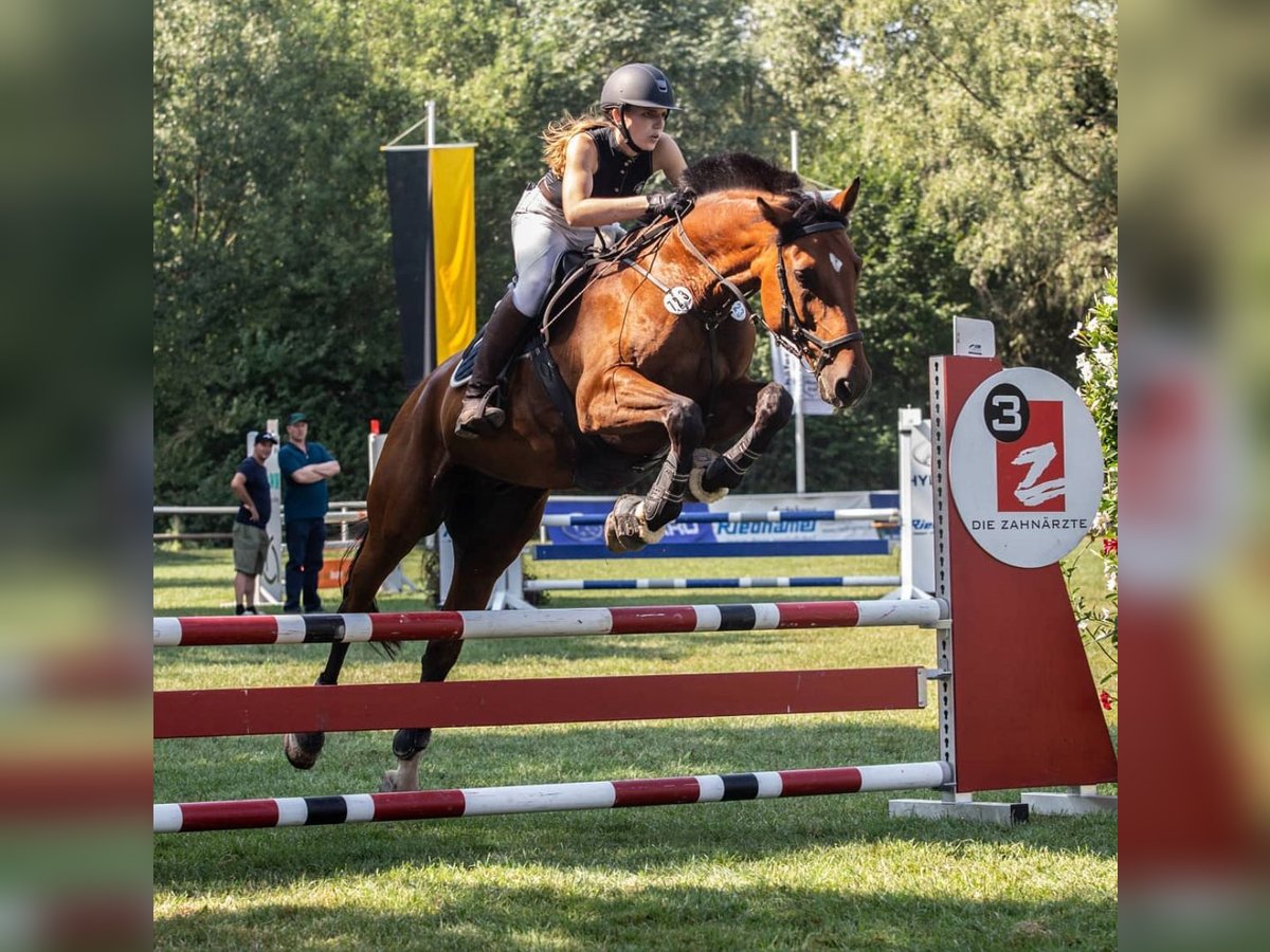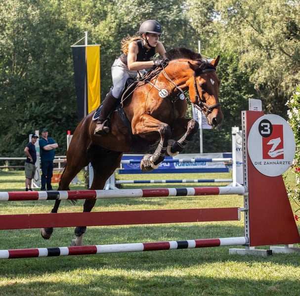Schweres Herzens verkaufen wir unser Familien-Pferd Lui, der uns nun bald 11 Jahre begleitet hat. Er ist 2009 geboren, springgezogen und eher kräftig von der Statur, was ihn sehr robust und belastbar macht und auch größere Reiter gut abdeckt. In der aktiven Phase ist er bis L Springen gelaufen, leider wegen Studium nicht weiter da gefördert worden und Dressur dann auch bis L gegangen. Nach einer Aufwärm- und Einlaufphase zeigt er sich motiviert bei der alltäglichen Arbeit, ist manchmal sogar etwas übereifrig und möchte an sich immer gefallen. Allerdings sollte man mindestens dressurlich sich auf einem A Niveau befinden, da er doch gerne am Anfang testet, ob man denn auch korrekt reitet. Beim springen ärgert er sich, wenn er die Stange berührt oder einen Fehler macht, was für seine Vorsicht spricht, allerdings auch mal mit einem auskeilen verbunden sein kann. An sich wurde er beim Springen eher stark, daher nichts für Anfänger. Im Gelände war er immer brav, manchmal im Galopp kann mal ein Freudensprung dabei sein, der ist aber nie böse gemeint. Im Umgang ist er immer aufmerksam, fast wie ein Hund und sehr Menschenbezogen. Er braucht seine feste Bezugsperson und hält sich dann auch an klare Regeln. Beim Schmied brav, ist voll beschlagen, beim verladen steigt er mit Longe (auf Sicht) ohne zögern ein, ist also eher ein psychologisches Mittel. Kennt Hühner, Katzen und Hunde, Hund auch in Begleitung beim Ausreiten. Wir geben ihn nur in beste Hände. Im besten Fall kann er bei uns auf dem eigenen Hof bleiben und der neue Möhrchengeber kommt aus der Umgebung. Daher gilt auch Platz vor Preis. Keine Anfänger, nur erfahrene Pferdehände zb Wiedereinsteiger für sportliche Freizeitgestaltung. Bei uns geht es ihm von der Haltung bestens, nur hat er es nicht verdient, halbherzig wegen Interessensänderungen bewegt zu werden.