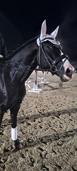 Er ist vom ersten Tag bis zum Anreiten in einer Hand gewesen, immer in einer Herde, mit jungen und auch mit älteren Pferden zusammen. Bis einschließlich Sommer bzw. Frühjahr 2025 war er Sommer wie Winter im Offenstall und konnte rein und raus zu jeder Zeit. Außer bei der Kastration hatte er noch keinen Tierarzt gebraucht. Ab diesen Sommer ist er unter dem Sattel, er ist ein Pferd mit Temperament und sehr guten Gängen. Unter dem Sattel zeigt er sich von seiner besten Seite, brav und lehrreich.